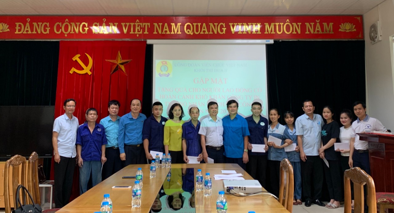 Nhân Tháng công nhân năm 2022, nhằm động viên, chia sẻ một phần khó khăn trước mắt đối với đoàn viên, người lao động có hoàn cảnh khó khăn trong các doanh nghiệp thuộc Khối thi đua II, Công đoàn Viên chức Việt Nam. Chiều ngày 20/5/2022, đoàn công tác Công đoàn Viên chức Việt Nam và Công đoàn Khối thi đua II, gồm các đơn vị: Công đoàn Kiểm toán Nhà nước, Công đoàn Văn phòng Trung ương Đảng, Công đoàn Cơ quan Trung ương Đoàn, Công đoàn Cơ quan Tổng Liên đoàn Lao động Việt Nam, Công đoàn cơ quan Ủy ban Trung ương MTTQ Việt Nam, Công đoàn Văn phòng Chính phủ, Công đoàn Văn phòng Quốc hội do đồng chí Vũ Lập Công, Phó Chủ tịch Công đoàn Kiểm toán Nhà nước, Khối trưởng Khối thi đua II làm Trưởng đoàn; tham gia đoàn công tác có các đồng chí cán bộ công đoàn thuộc các đơn vị trong Khối đã đến thăm hỏi, động viên, tặng 30 xuất quà, mỗi xuất quà trị giá là 1.000.000 đ trong đó (Công đoàn Viên chức Việt Nam tặng 10 suất quà; Công đoàn Khối thi đua II tặng 20 suất quà) cho 30 đoàn viên, người lao động Công ty In Tiến Bộ, Văn phòng Trung ương Đảng có hoàn cảnh khó khăn nhân Tháng công nhân năm 2022. Tham dự buổi làm việc có các đồng chí: Nguyễn Việt Tuấn, Phó Bí thư Đảng ủy, Giám đốc Công ty; Đoàn Đắc Trưởng, Phó Giám đốc, Chủ tịch Công đoàn Công ty.