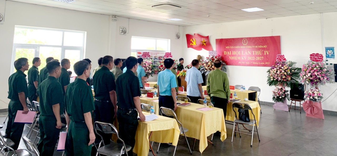 Ngày 27/6/2022, tại Trụ sở Công ty In Tiến Bộ, Cụm công nghiệp Ninh Hiệp, Gia Lâm, Hà Nội, Hội Cựu chiến binh Công ty In Tiến Bộ đã tiến hành tổ chức Đại hội lần thứ IV, nhiệm kỳ 2022-2027. Dự và chỉ đạo Đại hội có các đồng chí: Nguyễn Đức Thanh, Phó Chủ tịch Hội CCB Văn phòng Trung ương Đảng, Bí thư Đảng ủy, Chủ tịch Công ty In Tiến Bộ; Nguyễn Việt Tuấn, Phó Bí thư Đảng ủy, Giám đốc Công ty In Tiến Bộ; Nguyễn Thế Công, Phó Giám đốc Công ty In Tiến Bộ cùng toàn thể hội viên trong toàn hội.
