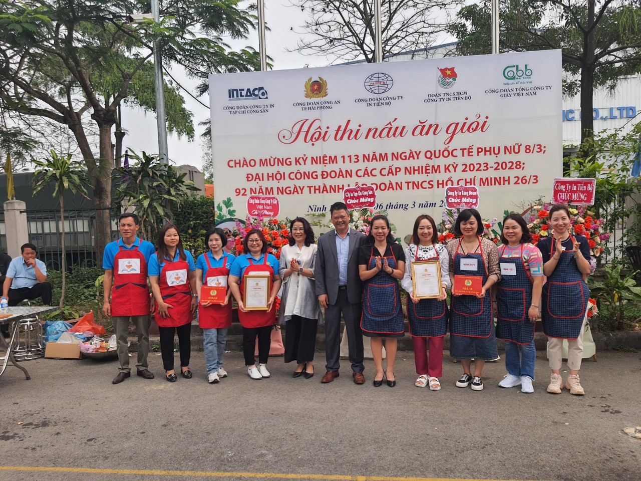Thiết thực chào mừng kỷ niệm 113 năm Ngày Quốc tế Phụ nữ 8/3 và chào mừng Đại hội Công đoàn các cấp nhiệm kỳ 2023-2028, ngày 6/3/2023, Công đoàn Công ty In Tiến Bộ chủ trì và phối hợp với Công đoàn Công an thành phố Hải phòng, Công đoàn Tổng Công ty Giấy Việt Nam, Công đoàn Công ty In Tạp chí Cộng sản đã tổ chức Hội thi nấu ăn giỏi với sự tham gia của 05 đội thi đến từ 04 công đoàn cơ sở và Đoàn TNCS Hồ Chí Minh cơ sở. Đến dự và cổ vũ Hội thi có các đồng chí: Nguyễn Đức Thanh, Bí thư Đảng ủy, Chủ tịch Công ty In Tiến Bộ; Nguyễn Việt Anh, Giám đốc Công ty In Tạp chí Cộng sản; Ngô Đại Đồng, Chủ tịch Công ty CP In Công đoàn Việt Nam; Thượng tá Ngô Thị Thanh Bình, Chủ tịch Công đoàn Công an thành phố Hải phòng; Ngô Thu Hằng, Chủ tịch Công đoàn Tổng Công ty Giấy Việt Nam; Nguyễn Việt Tuấn, Phó Bí thư Đảng ủy, Giám đốc Công ty In Tiến Bộ; Đoàn Đắc Trưởng, Phó Giám đốc, Chủ tịch Công đoàn Công ty In Tiến Bộ; Trần Đức Mạnh, Phó Trưởng phòng, Kiểm soát viên Công ty; Nguyễn Văn Thông, Chủ tịch Công đoàn Công ty In Tạp chí Cộng sản và đông đảo cán bộ, đoàn viên của 04 đơn vị tham gia.