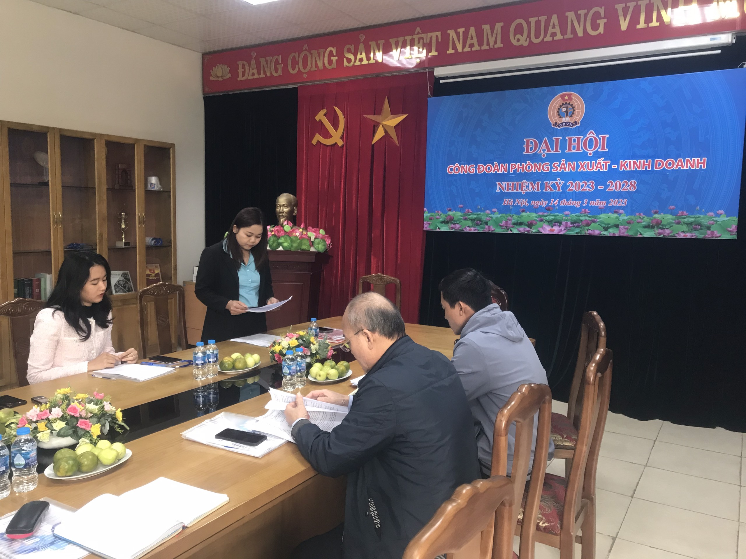 Thực hiện kế hoạch tổ chức đại hội các công đoàn bộ phận trực thuộc nhiệm kỳ 2023-2028 tiến tới đại hội Công đoàn Công ty In Tiến Bộ lần thứ XXXIII, nhiệm kỳ 2023-2028 của Ban Thường vụ Công đoàn Công ty In Tiến Bộ. Sáng ngày 14/3/2023, tại trụ sở Công ty In Tiến Bộ, Công đoàn Phòng Sản xuất & Kinh doanh long trọng tổ chức Đại hội nhiệm kỳ 2023 - 2028. Đến dự và chỉ đạo Đại hội có các đồng chí: Nguyễn Việt Tuấn, Phó Bí thư Đảng ủy, Giám đốc Công ty; Khang Văn Giáp, Đảng ủy viên, Phó Chủ tịch Công đoàn Công ty; Ngô Minh Thành, Đảng ủy viên, Bí thư chi bộ, Trưởng phòng Sản xuất & Kinh doanh.