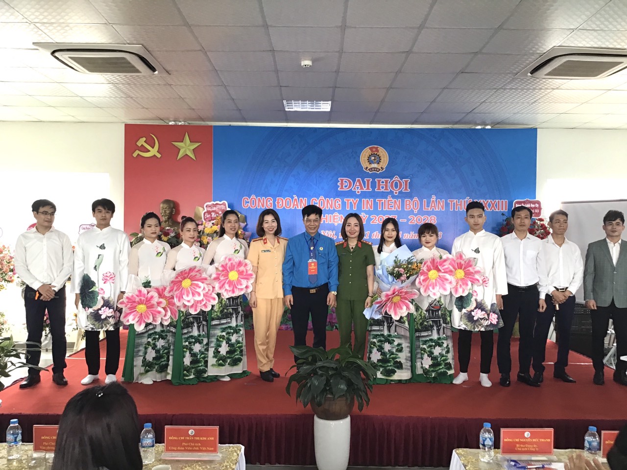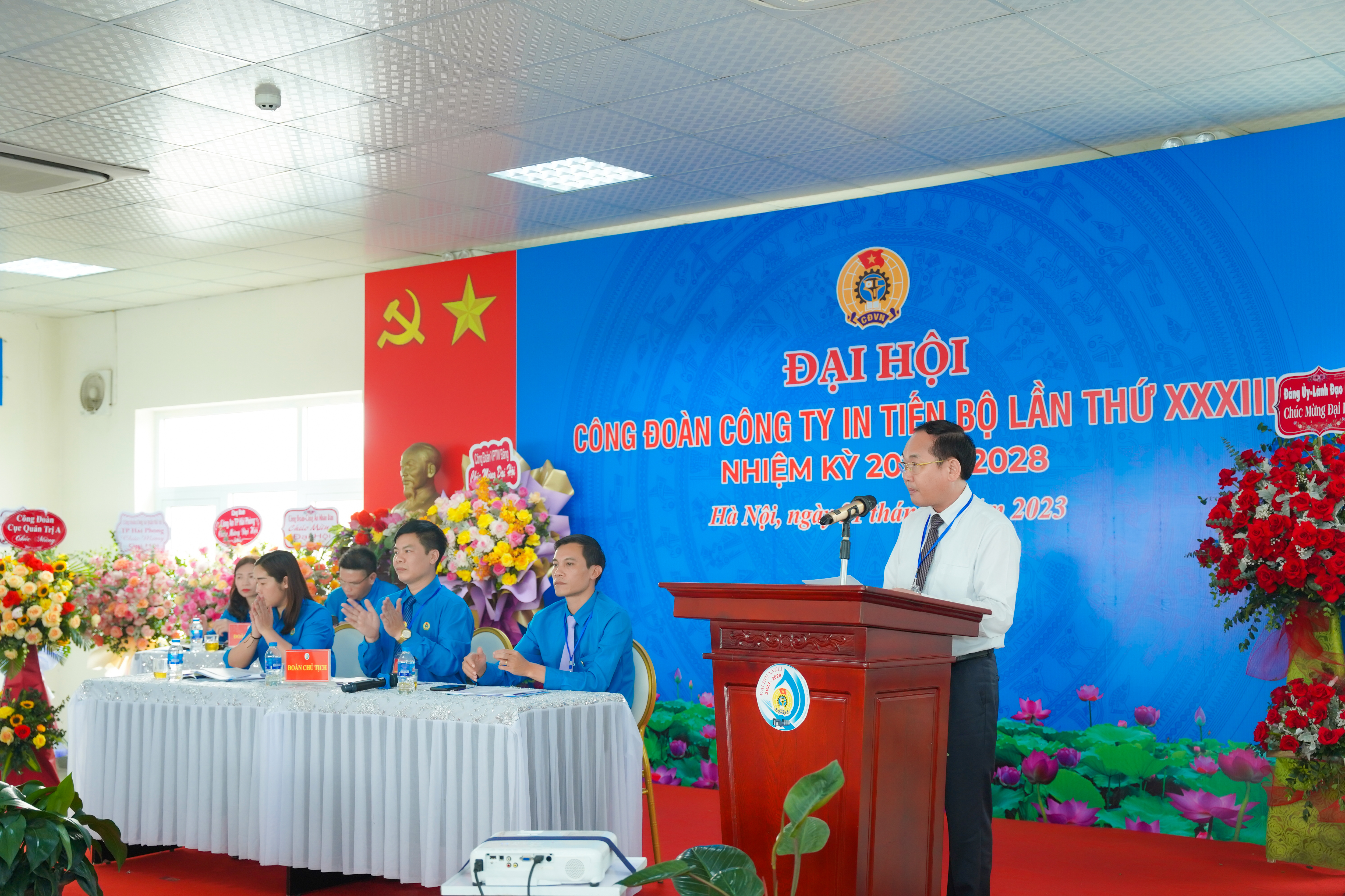 Thực hiện kế hoạch của Ban Thường vụ Công đoàn Văn phòng Trung ương Đảng về việc tổ chức đại hội công đoàn các cấp nhiệm kỳ 2023 – 2028 tiến tới Đại hội Công đoàn Văn phòng Trung ương Đảng nhiệm kỳ 2023 – 2028. Ngày 21/4/2023, tại Hội trường Công ty In Tiến Bộ, Công đoàn Công ty In Tiến Bộ đã long trọng tổ chức Đại hội lần thứ XXXIII, nhiệm kỳ 2023 - 2028. Dự Đại hội có các đồng chí: Trần Thị Kim Anh, Phó Chủ tịch Công đoàn Viên chức Việt Nam; Nguyễn Thu Thủy, Phó Trưởng Ban Tuyên giáo – Nữ công Công đoàn Viên chức Việt Nam; Đỗ Văn Chiến, Phó Chủ tịch Công đoàn Văn phòng Trung ương Đảng; Nguyễn Mạnh Bính, Ủy viên Ban Thường vụ Công đoàn Văn phòng Trung ương Đảng; Thượng tá Đinh Văn Mạnh, chuyên viên cao cấp Ban công đoàn Công an Nhân dân; Thượng tá Ngô Thị Thanh Bình, Chủ tịch Công đoàn Công an thành phố Hải phòng; Nguyễn Văn Thủy, Phó Cục trưởng, Chủ tịch Công đoàn Cục Quản trị A; Nguyễn Đức Thanh, Bí thư Đảng ủy, Chủ tịch Công ty In Tiến Bộ; Nguyễn Việt Tuất, Phó Bí thư Đảng ủy, Giám đốc Công ty cùng đông đủ 125 đoàn viên công đoàn.