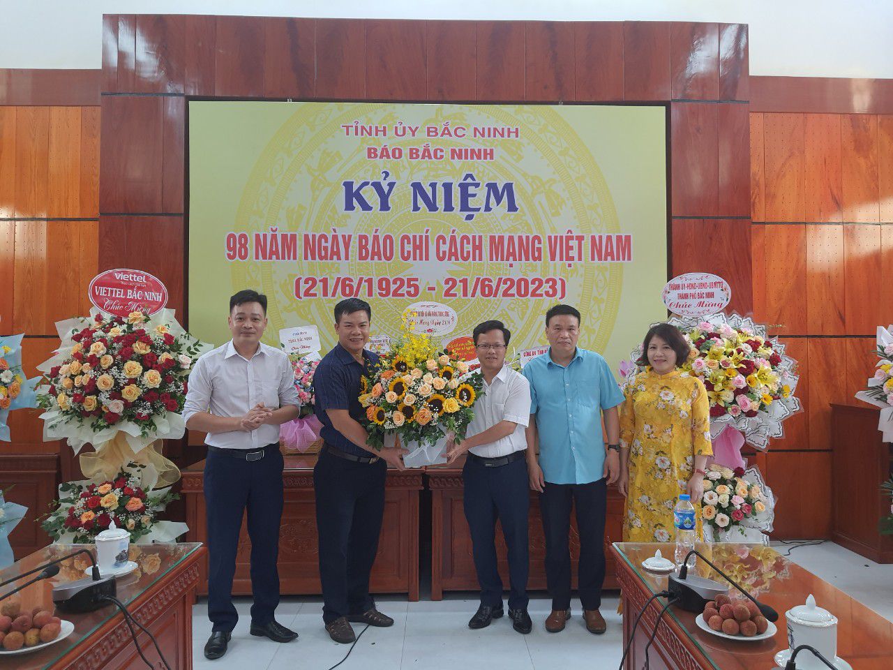 Đ/c Đoàn Đắc Trưởng, Phó Giám đốc Công ty tặng hoa chúc mừng Báo Bắc Ninh nhân ngày 21/6