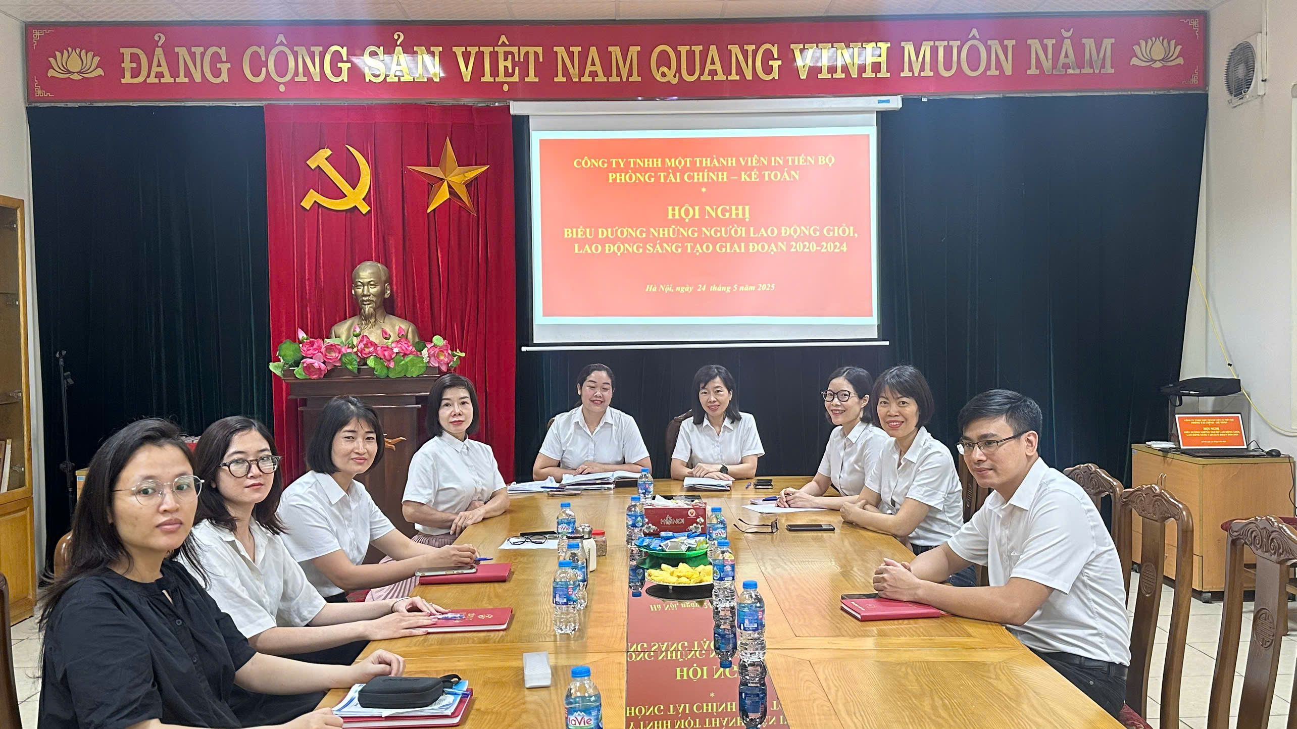 Thực hiện kế hoạch của Công ty TNHH một thành viên In Tiến Bộ về tổ chức Hội nghị biểu dương những người lao động giỏi, lao động sáng tạo giai đoạn 2020-2025. Hòa chung với không khí thi đua phấn khởi cùng người lao động Công ty thi đua lập thành tích chào mừng kỷ niệm 135 năm ngày sinh Chủ tịch Hồ Chí Minh kính yêu 19/5 và chào mừng Đại hội Đảng bộ Công ty In Tiến Bộ lần thứ XXXIII. Sáng ngày 24/5/2025, tại trụ sở Công ty, Phòng Tài chính – kế toán trực thuộc Công ty đã tổ chức Hội nghị Biểu dương Những Người Lao động Giỏi, Lao động Sáng tạo giai đoạn 2020-2025. Tham dự hội nghị có đông đủ cán bộ, nhân viên, người lao động Phòng Tài chính – Kế toán.