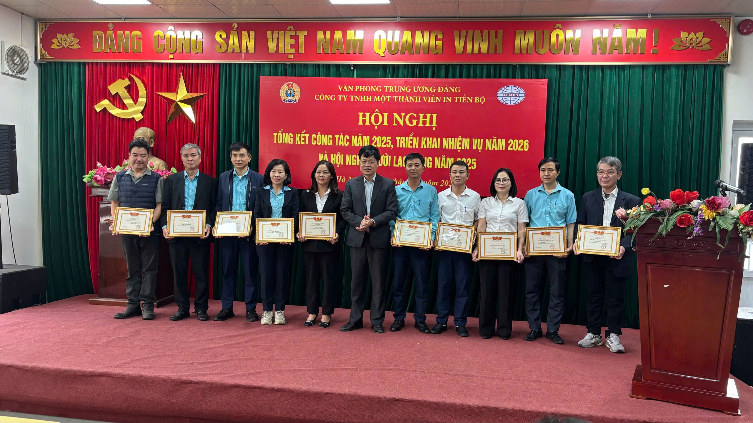 Thực hiện Điều lệ Công ty và Quy chế làm việc của Công ty In Tiến Bộ. Ngày 12/12/2025, tại Trụ sở Công ty In Tiến Bộ, Cụm công nghiệp Ninh Hiệp, Phù Đổng, Hà Nội, Công ty TNHH một thành viên In Tiến Bộ đã tổ chức Hội nghị tổng kết công tác chuyên môn, công tác đảng, công tác công đoàn năm 2025 và triển khai nhiệm vụ công tác năm 2026; tổ chức hội nghị đại biểu người lao động năm 2025. Tham dự và chỉ đạo Hội nghị có các đồng chí: Lê Văn Điệu, Phó Bí thư Đảng uỷ chuyên trách Văn phòng Trung ương Đảng; Nguyễn Việt Tuấn, Phó Bí thư Đảng ủy, Chủ tịch Công ty, Giám đốc Công ty; Đoàn Đắc Trưởng, Ủy viên BCH Đảng bộ Văn phòng Trung ương Đảng, Bí thư Đảng ủy, Phó Giám đốc Công ty cùng các đồng chí trong Ban Chấp hành Đảng bộ, Ban Giám đốc, Ban Chấp hành Công đoàn, Đoàn TN, Hội CCB Công ty, Ban chấp hành các công đoàn bộ phận trực thuộc; cấp trưởng, cấp phó các đơn vị, Trưởng kíp, tổ trưởng sản xuất; cá nhân được khen thưởng năm 2025 và toàn thể đảng viên.