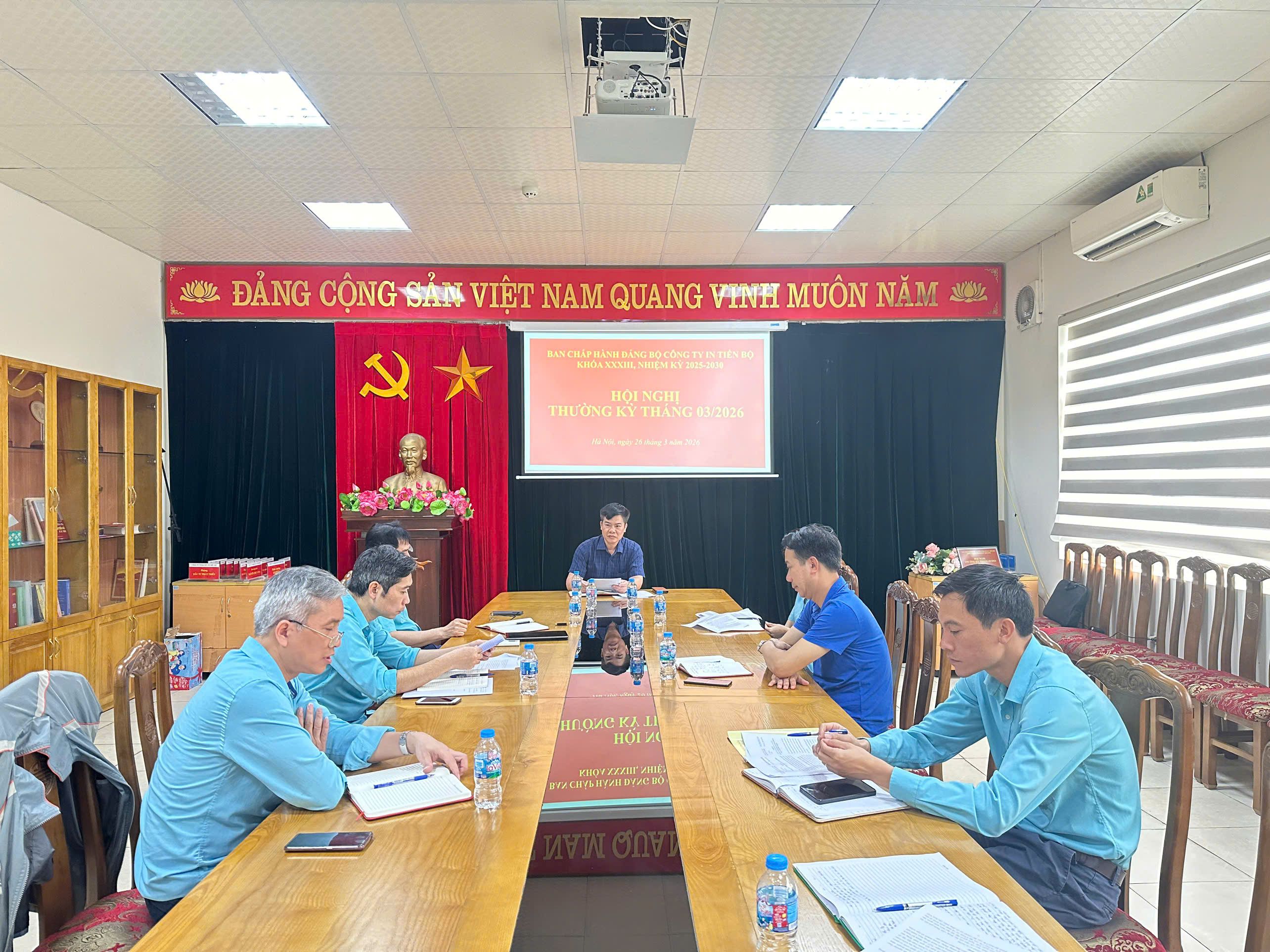 Thực hiện Quy chế làm việc và Chương trình công tác năm 2026 của Ban Chấp hành Đảng bộ Công ty In Tiến Bộ. Ngày 26/3/2026 tại trụ sở Công ty In Tiến Bộ, Ban Chấp hành Đảng bộ Công ty In Tiến Bộ tổ chức hội nghị thường kỳ dưới sự chủ trì của đồng chí Đoàn Đắc Trưởng, Ủy viên BCH Đảng bộ Văn phòng Trung ương Đảng, Bí thư Đảng ủy, Phó Giám đốc Công ty. Tham dự hội nghị có đầy đủ các đồng chí Ủy viên Ban Chấp hành, Ủy ban Kiểm tra Đảng ủy Công ty khóa XXXIII.
