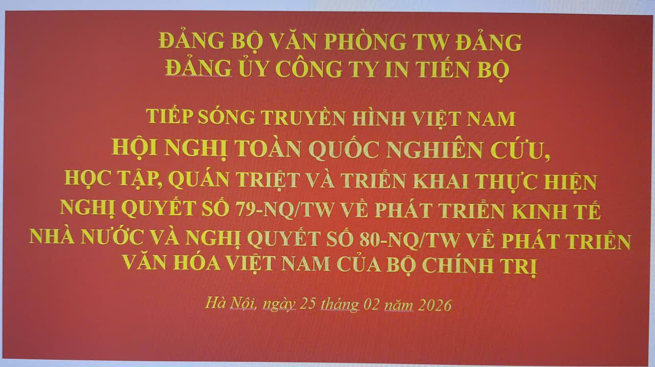 Đảng ủy Công ty In Tiến Bộ tổ chức điểm cầu, tiếp sóng Hội nghị trực tuyến Toàn quốc nghiên cứu, học tập, quán triệt và triển khai thực hiện Nghị quyết 79-NQ/TW và Nghị quyết số 80-NQ/TW của Bộ Chính trị