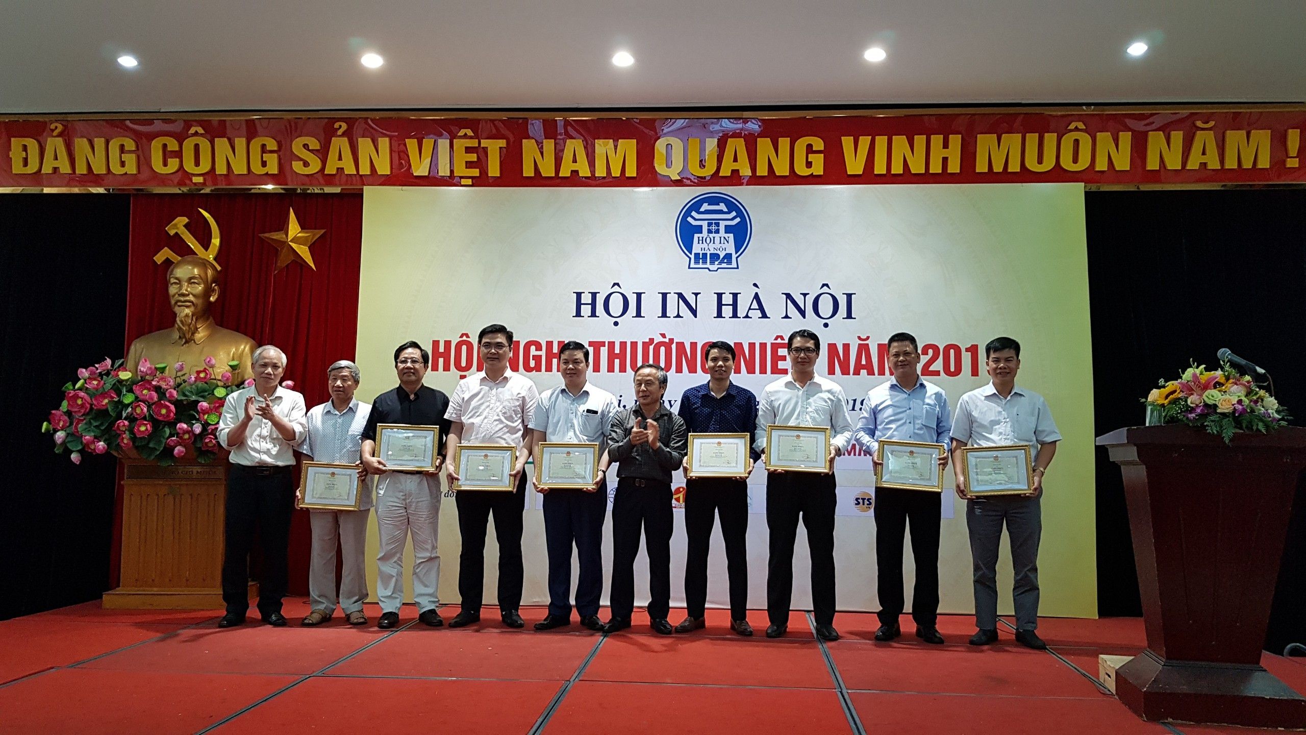 Nhằm động viên khen thưởng kịp thời các tập thể, cá nhân hội viên đạt thành tích xuất sắc trong công tác hội năm 2018. Ban Chấp hành Hội In Hà Nội đã quyết định tặng Bằng khen cho 09 tập thể là: Công ty TNHH một thành viên In Quân đội 1; Công ty TNHH một thành viên Báo Nhân dân Hà Nội; Công ty TNHH Tam Tín Hà Nội; Công ty CP Xuất nhập khẩu ngành in SIC; Công ty TNHH một thành viên In Tiến Bộ; Công ty TNHH một thành viên In Ba Đình; Tổng Công ty Giấy Việt Nam; Công ty CP Hóa chất & Xơ Sợi Maruni; Công ty CP An Hùng Minh và 10 cá nhân là đại diện lãnh đạo doanh nghiệp hội viên, cán bộ Văn phòng Hội.