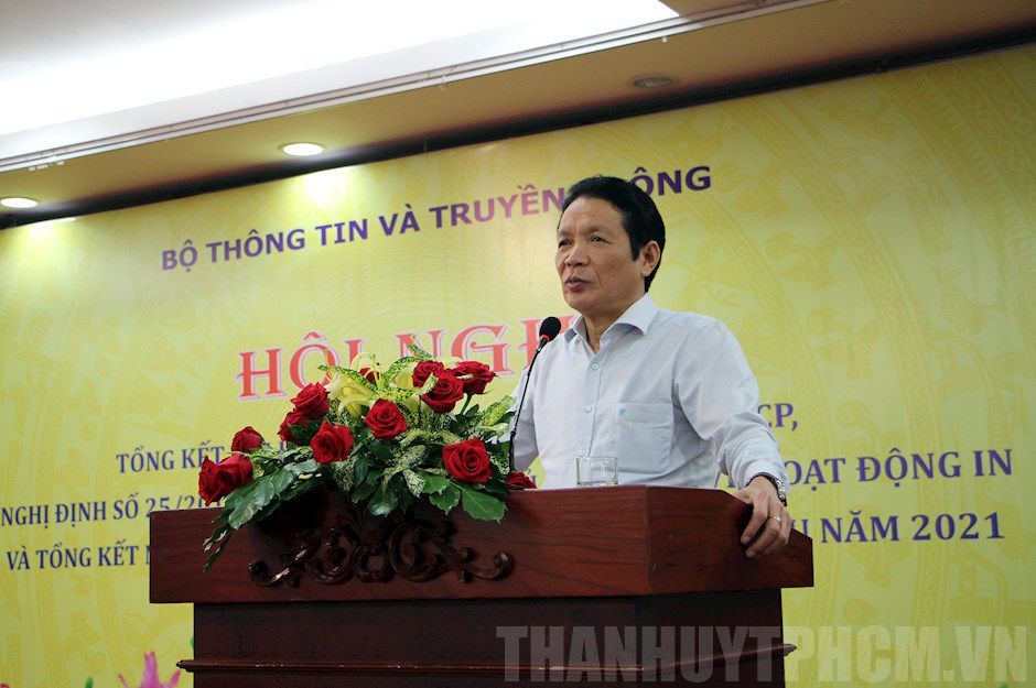 Ngày 18/3, tại TPHCM, Bộ Thông tin và Truyền thông (TT-TT) đã tổ chức Hội nghị tổng kết thi hành Nghị định số 60/2014/NĐ-CP, Nghị định số 25/2018/NĐ-CP quy định về hoạt động in. Tham dự hội nghị có các đồng chí: Thứ trưởng Bộ TT-TT Hoàng Vĩnh Bảo; Cục trưởng Cục Xuất bản, In và phát hành Nguyễn Nguyên; Chủ tịch Hiệp hội In Việt Nam Nguyễn Văn Dòng; Phó Chủ tịch Hiệp hội In Việt Nam, Chủ tịch Hội In Hà Nội, Chủ tịch Công ty In Tiến Bộ Nguyễn Đức Thanh; Phó Chủ tịch kiêm Tổng thư ký Hội In Hà Nội Bùi Doãn Nề cùng với lãnh đạo Sở TT-TT, lãnh đạo các doanh nghiệp in trong cả nước.