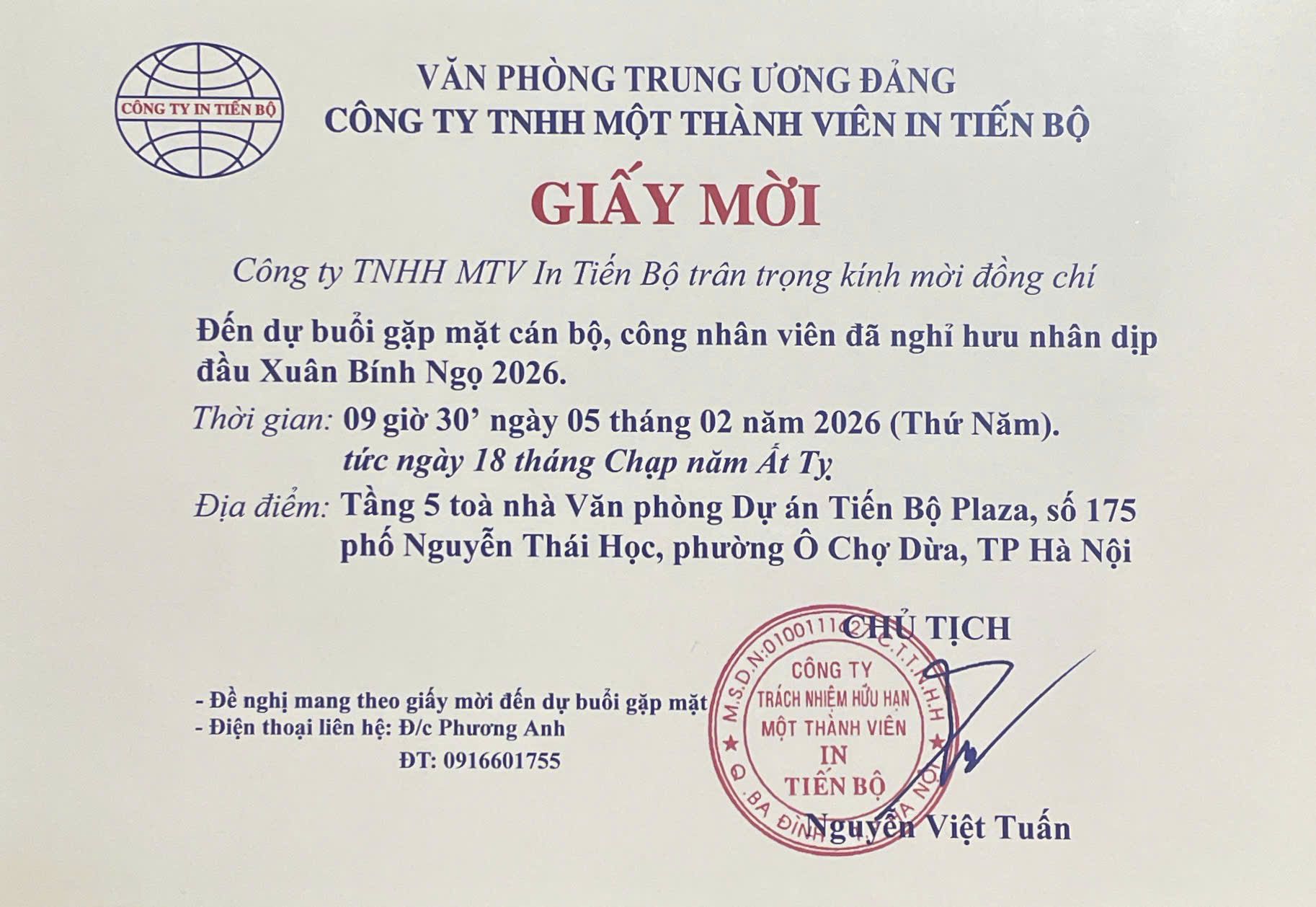 Công ty In Tiến Bộ gặp mặt Đầu Xuân Bính Ngọ năm 2026   -  23/02/2026