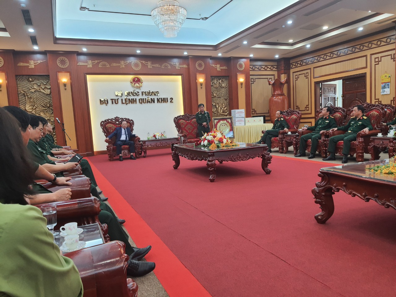 Đồng chí Thượng tướng Nguyễn Văn Thành, Phó Chủ tịch HĐLL Trung ương thay mặt Đoàn công tác ghi nhận và đánh giá cao những kết quả mà lực lượng vũ trang Quân khu đã đạt được trong những năm vừa qua đồng thời tin tưởng rằng dưới sự lãnh đạo, chỉ đạo của Đảng ủy, Bộ Tư lệnh Quân khu, lực lượng vũ trang Quân khu sẽ tiếp tục gặt hái được nhiều thành tựu trong thực hiện nhiệm vụ quân sự - quốc phòng, góp phần giữ vững chủ quyền biên giới quốc gia, giúp dân phát triển kinh tế, xóa đói, giảm nghèo. Nhân dịp kỷ niệm 78 năm ngày thành lập Quân đội Nhân dân Việt Nam đồng chí Thượng tướng Nguyễn Văn Thành, Phó Chủ tịch HĐLL Trung ương gửi lời chúc mừng tốt đẹp nhất đến toàn thể cán bộ, chiến sỹ lực lượng vũ trang Quân khu 2.