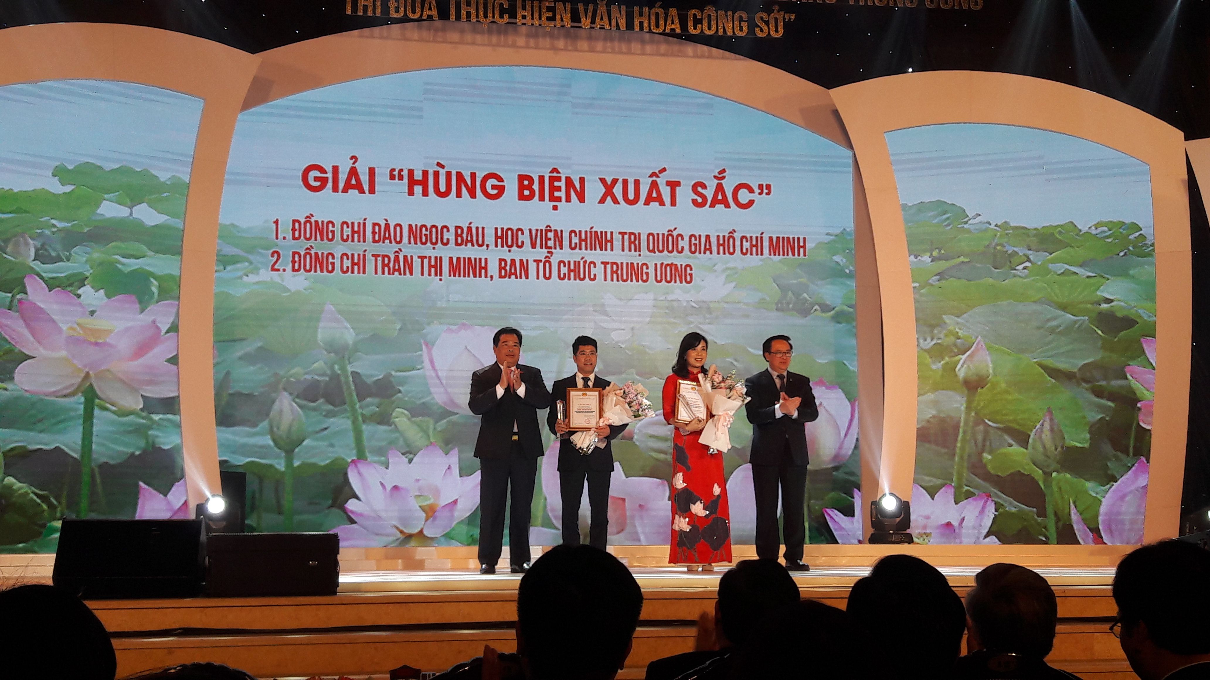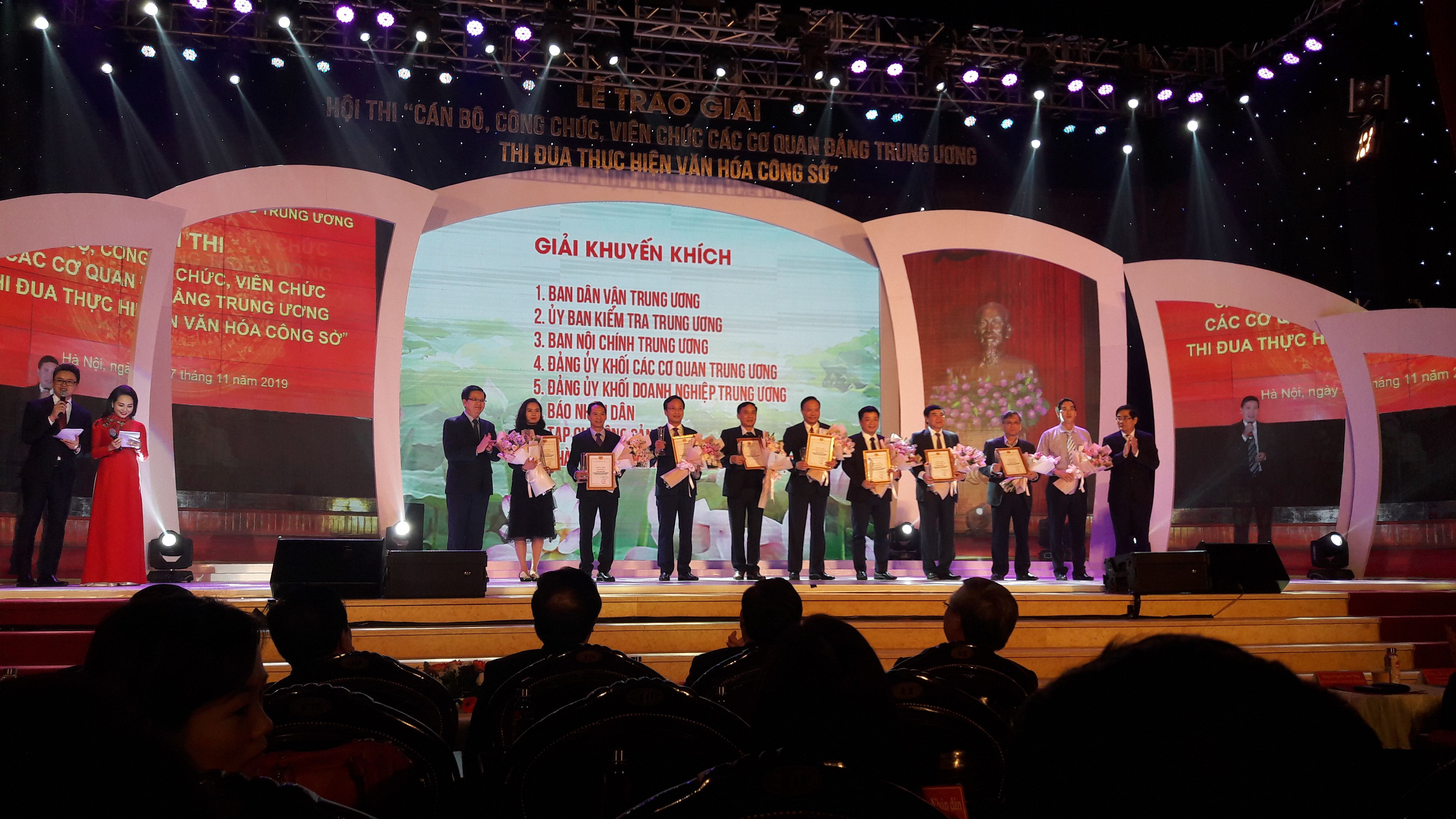 Ngày 30/12/2019, tại Học viện chính trị Quốc gia, Hà Nội, Khối Thi đua các cơ quan Đảng Trung ương tổ chức Lễ trao giải Hội thi “Cán bộ, công chức, viên chức các cơ quan Đảng T.Ư thi đua thực hiện văn hóa công sở”. Đến dự có các đồng chí: Trần Quốc Vượng, Uỷ viên Bộ Chính trị, Thường trực Ban Bí thư; Phạm Minh Chính, Uỷ viên Bộ Chính trị, Bí thư T.Ư Đảng, Trưởng Ban Tổ chức T.Ư; đồng chí Nguyễn Xuân Thắng, Bí thư T.Ư Đảng, Giám đốc Học viện Chính trị quốc gia Hồ Chí Minh, Chủ tịch Hội đồng Lý luận T.Ư, Khối trưởng Khối Thi đua các cơ quan Đảng T.Ư; các đồng chí Ủy viên T.Ư Đảng, đại diện lãnh đạo các cơ quan Đảng T.Ư…; đồng chí Trần Thanh Bình, Phó Chánh Văn phòng Trung ương Đảng tham dự.